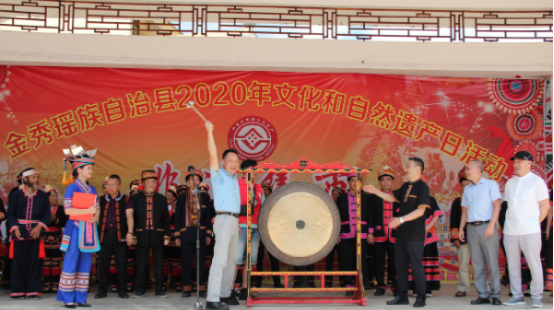 “擊鑼開市”“山歌傳情”“瑤醫(yī)問診”“吃樹葉豆腐”“跳黃泥鼓舞”,6月13日,廣西來賓市金秀瑤族自治縣2020年“文化和自然遺產(chǎn)日”——“非遺集市”活動在羅香鄉(xiāng)橫村瑤寨拉開序幕。廣西壯族自治區(qū)非物質(zhì)文化遺產(chǎn)保護中心書記朱鳳立、金秀瑤族自治縣人民政府副縣長馬峰為“非遺”集市“擊鑼開市”。