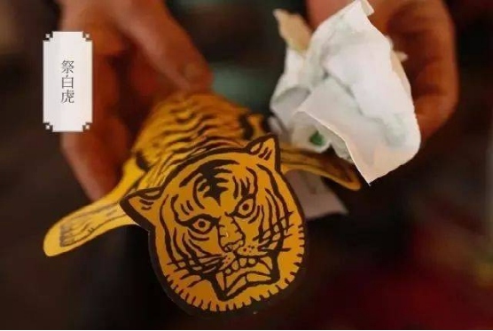 民間傳說白虎是口舌是非之神,每年都會(huì)在這天出來覓食,開口噬人,犯之則在這年之內(nèi),常遭邪惡小人阻撓前程,會(huì)百般不順。為了自保,在驚蟄當(dāng)天拜祭用紙繪的老虎,紙老虎一般為黃毛黑斑紋, 口角畫有一一對獠牙,拜祭時(shí),需以豬血喂之,使其吃飽不再出口傷人,再以生豬肉抹在紙老虎的嘴上,使之充滿油水,不能張口說人是非。