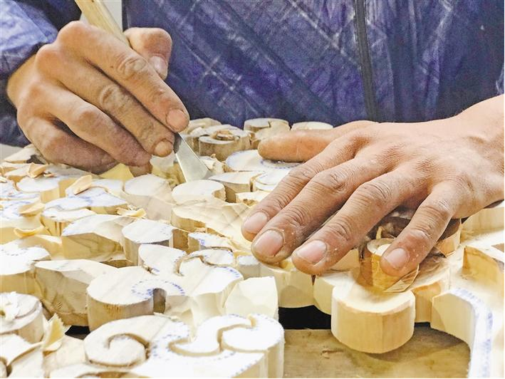 經(jīng)拉巴次仁之手刻出的作品干凈利落,不多一分也沒(méi)少一處,極大地表現(xiàn)出木雕藝術(shù)的魅力和風(fēng)格。然而,要完成一件長(zhǎng)約50厘米、寬約15厘米的建筑裝飾品,就需要花費(fèi)一天半的功夫。