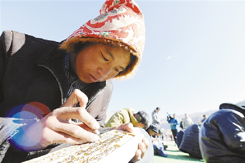 普松是著名的“雕刻之鄉(xiāng)”。雕刻在尼木縣普松鄉(xiāng)有著悠久的歷史,是普松鄉(xiāng)群眾世世代代傳承下來的一項(xiàng)古老技藝,作為在全區(qū)享有盛譽(yù)的傳統(tǒng)技藝,雕刻藝人在長年累月的鉆研過程中不斷對其進(jìn)行豐富和發(fā)展。普松雕刻形式多樣,應(yīng)用廣泛,不僅有單一的文字雕刻,還有圖文并茂的圖案;不僅應(yīng)用于藏傳佛教活動(dòng),還應(yīng)用于印制經(jīng)幡,西藏很多山口懸掛的經(jīng)幡,都是用普松雕版印制的,在拉薩市場,它們占有90%的份額。(記者 旦增)