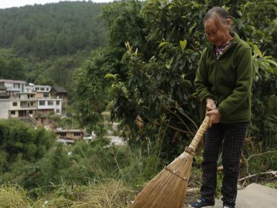 貴州貴陽苗族日常生活-打掃院落