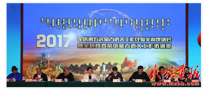 2017年11月28至29日,內(nèi)蒙古自治區(qū)第五次蒙古語文工作經(jīng)驗交流現(xiàn)場會暨全區(qū)民委系統(tǒng)蒙古語文工作培訓班在內(nèi)蒙古自治區(qū)阿拉善盟召開