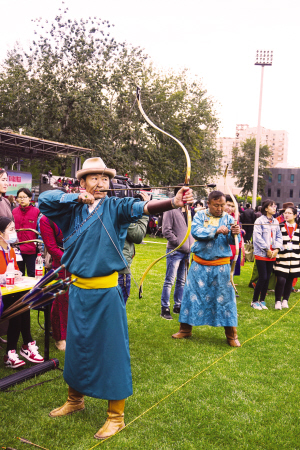 2016年10月22日,中央民族大學(xué)操場上熱鬧非凡。悠揚的馬頭琴聲,飄香的奶酒,繽紛絢麗的蒙古族服飾,搏克、射箭等競技活動以及蒙古族特色產(chǎn)品展銷,把首都的一方土地變成了蒙古族傳統(tǒng)節(jié)慶活動的歡樂海洋。據(jù)統(tǒng)計,當(dāng)天有兩萬多名在京蒙古族同胞及來自全國各地的各族群眾自發(fā)參與了這場民間活動。