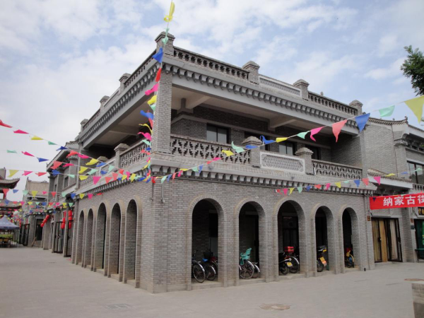 中華回鄉(xiāng)第一街位于永寧縣納家戶北側(cè)。該項(xiàng)目以納家戶清真大寺為中心擴(kuò)展門前廣場(chǎng),以廣場(chǎng)為中心向北,直北長(zhǎng)380米,東西寬107米,占地面積93.78畝,建筑面積1.6萬平方米,建成商鋪177套。所有建筑遵循當(dāng)?shù)鼗刈宓慕ㄖL(fēng)格,采用青磚砌筑,尤其在細(xì)節(jié)處理上用符號(hào)、色調(diào)與裝飾來表現(xiàn)回族建筑的精髓。雕梁畫棟,飛檐四出,并且在墻壁、牌坊、檐口、山墻等處運(yùn)用了大量磚雕、伊斯蘭花飾等將伊斯蘭文化藝術(shù)與中國(guó)傳統(tǒng)建筑風(fēng)格有機(jī)的結(jié)合在一起,為景區(qū)增加了濃郁的歷史文化氛圍。該街道由北向南依次分為土特產(chǎn)區(qū)、民俗文化區(qū)、旅游紀(jì)念區(qū)、餐飲區(qū)、配套商業(yè)區(qū)五大功能區(qū)。
