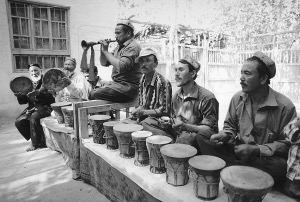 艾克山·艾爾肯對我笑著說:“你知道嗎?傳說納格拉與西洋的定音鼓有著密切的關(guān)系。它們同起源于阿拉伯國家的罐鼓,在民間音樂中總是一大一小成對使用,以小槌敲擊,發(fā)出‘咚噠’的音響,所以至今它的阿拉伯名字還叫做納格拉。”