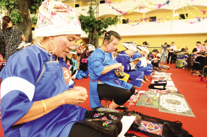 經(jīng)過層層選拔出的100名繡娘在此飛針走線,同秀技藝,展現(xiàn)了少數(shù)民族民間文化獨特的藝術魅力。