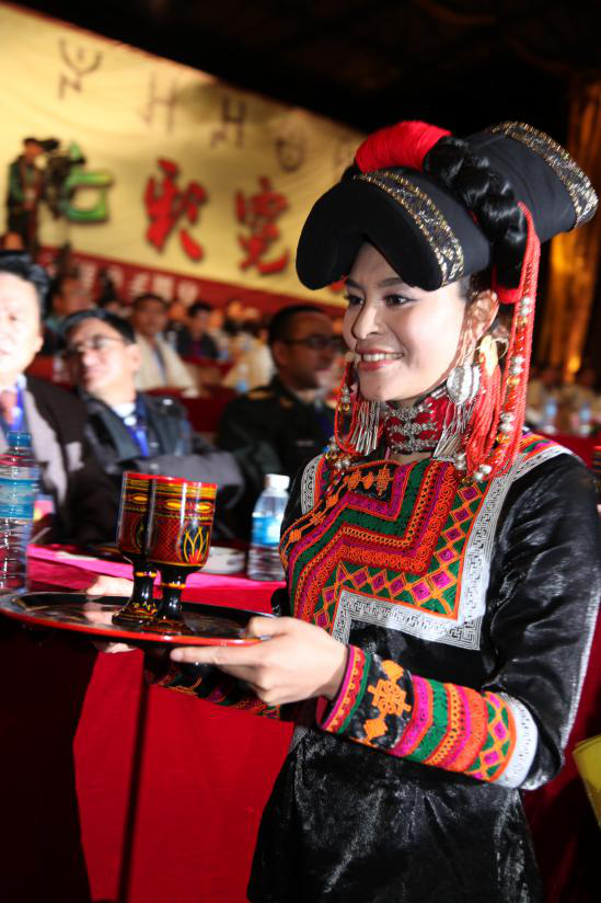 彝族飲料有茶和酒。彝族酒有白酒和連糟酒,白酒度數(shù)較高,連糟酒僅為10余度,其制作法與漢族無(wú)異。彝族人喜歡喝酒,涼山彝族每當(dāng)客人光臨,首先敬上去的是酒,其次才是茶。彝族有一種酒叫“咂酒”,就是把酒裝入罐中,把口封起來(lái),喝的時(shí)候插上空心的竹管,喝酒者自己往竹管上咂,所以稱為“咂酒”。喝茶不像喝酒一樣在各彝族地區(qū)盛行,相比較而言,烏蒙山區(qū)的彝族更喜歡喝茶,濃度也較高,其做法是先將茶葉放在茶罐里烤熱后放冷水煮沸。涼山部分彝區(qū)還有喝奶茶的習(xí)俗,其做法和藏族同胞的做法有些類似。