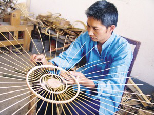 布依族鳥(niǎo)籠制作技藝傳承人黃廷峰在制作鳥(niǎo)籠