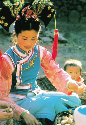 滿族婦女在打理新?lián)斓纳胶颂摇?資料圖片