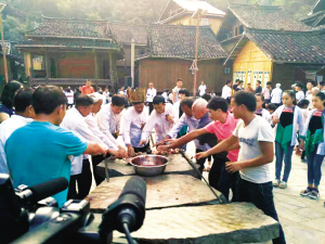 2016年9月1日(農(nóng)歷八月初一),貴州省從江縣高增鄉(xiāng)占里侗寨的男女老少同飲血酒,對(duì)石盟誓,重溫祖先誓言。