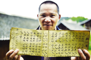 圖為仁吉侗寨村民吳昌賢在展示祖輩流傳下來(lái)的古老蘆笙曲譜。 吳國(guó)楨 攝影報(bào)道