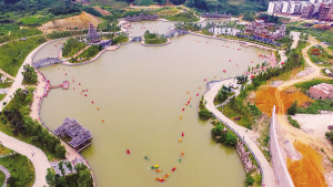 俯瞰侗寨青山綠水間的皮劃艇賽事。 胡慶才 楊代富 楊秀銀 攝影