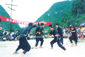 日前,廣西大化瑤族自治縣七百弄鄉(xiāng)和東蘭縣三弄瑤族鄉(xiāng)的布努瑤同胞分別舉行隆重的活動(dòng),慶祝自己的民族傳統(tǒng)節(jié)日“祝著節(jié)”。“祝著節(jié)”,亦稱祖娘節(jié)、二九節(jié)、盤古節(jié)或瑤年,是瑤族人民隆重的節(jié)日之一。這天,布努瑤同胞表演了一臺(tái)臺(tái)古色古香的文藝節(jié)目。當(dāng)?shù)馗髯迦罕姾团忇l(xiāng)鎮(zhèn)的農(nóng)民朋友也匯集一堂,和布努瑤兄弟姐妹一道慶賀這個(gè)盛大的民族節(jié)日。