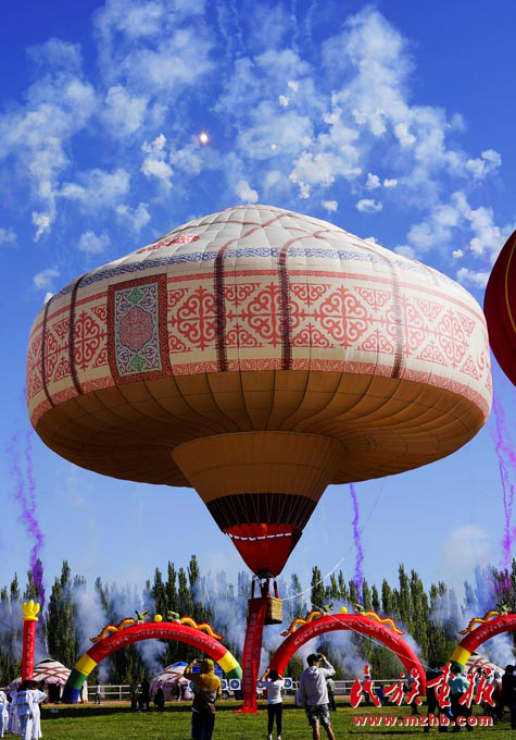 氈房是哈薩克族的傳統(tǒng)民居之一,是哈薩克族人游牧時居住的地方。圖中直徑長達21米、高23米、體積達2800立方米、通過世界紀錄協(xié)會認證的這只阿克塞縣的旅游空中形象大使,是目前世上最大的哈薩克族氈房熱氣球