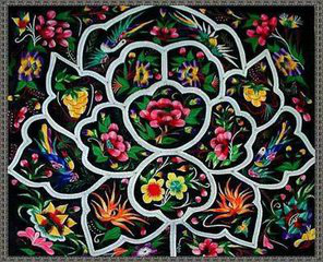 傣錦按構(gòu)成形式和材料可分為兩大類:一是以西雙版納為代表的傣錦;二是以德宏為代表的傣錦。兩類傣錦在紋樣構(gòu)成、色彩處理和植物材料上均有很大不同。 西雙版納傣錦以白底為主,上織黑、紅花紋,色彩明快,整體效果突出。深底的色彩織錦較少。尤其喜歡采用帶狀紋樣。帶狀紋樣疏密有序,每條紋樣內(nèi)容形式又有變化。西雙版納傣錦經(jīng)線、緯線均為棉線,通經(jīng)通緯織花。德宏位錦是以棋格紋為基本骨架的四方連續(xù)圖案,棋格內(nèi)嵌以四瓣花、萬(wàn)字紋、象鼻紋、象足紋、八角花等經(jīng)過(guò)幾何化的抽象紋祥:色彩濃重沉艷,常以高飽和度的色彩組成強(qiáng)烈對(duì)比色調(diào),有的以黑色為底,還夾織金、銀線??椢锊牧蠟榻?jīng)棉緯絲,編織工藝既有通經(jīng)織花,又有通經(jīng)斷緯織花,采用高臺(tái)織機(jī)編織。四方連續(xù)圖案沒有明確的方向,便于多種用途,如床褥、被面、統(tǒng)帕等。