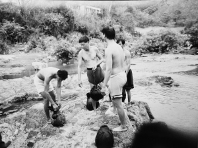 有一天,我在通什(今五指山市)的一條河邊,看見(jiàn)有幾個(gè)黎族人抱著大葫蘆過(guò)河。我趕緊拿出相機(jī),在河邊的大石頭間跳來(lái)跳去追拍。沒(méi)想到一不留神就跳空了,重重地摔在石頭上,造成了骨裂,當(dāng)時(shí)就不能動(dòng)彈了,在醫(yī)院里躺了好長(zhǎng)一段時(shí)間。