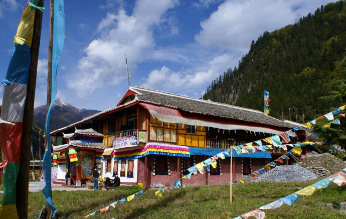 九寨溝里九個(gè)古老的藏族村寨,到處有石磨房、棧道、經(jīng)幡和藏羌歌舞等,藏族特色濃郁而神秘。原始古樸的村寨散落在綠樹環(huán)抱的群山之中,顯得更加古老、寧?kù)o。九寨溝,平均海拔在2500米左右,屬于寒溫帶地區(qū),所以冬無(wú)嚴(yán)寒,夏無(wú)酷暑,在這里的傳統(tǒng)的建筑大都為木結(jié)構(gòu)。