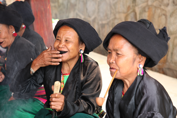 男子一般穿黑色或青色寬大長(zhǎng)褲和對(duì)襟無(wú)領(lǐng)上衣纏頭巾。成年男子喜愛(ài)文身。無(wú)論男女都喜歡飲酒、染齒、吸煙。布朗族有一獨(dú)特的風(fēng)俗“染齒”。他們認(rèn)為只有染黑的牙齒才最堅(jiān)固、最美觀。經(jīng)過(guò)染齒的男女青年才有權(quán)談戀愛(ài)。布朗族男子有文身的習(xí)俗,四肢、胸部、腹部皆刺以各種幾何圖形和飛禽走獸,然后涂上碳灰和蛇膽汁,使其不消失。