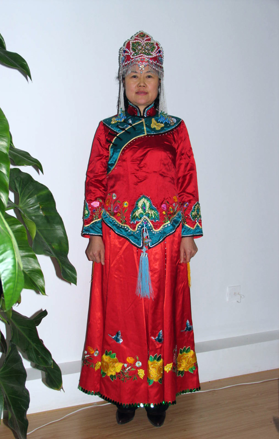剛出嫁的女子的服飾要比少女的服飾更加艷麗,并且梳理的發(fā)型也會有所差異,媳婦梳的是“盤龍髻”,額前有“劉?!?,腦后有“燕尾”,頭頂上烏發(fā)蓬起,盤成髻形,日常生活中將辮梳成雙辮或兩“抓髻”,合起成為一個大“疙瘩髻”。頭發(fā)抹頭油,沒有頭油的,用榆樹皮泡的水也粘稠光亮。面部可以涂粉,口可以涂口紅,可以染指甲等。頭部髻上插著金簪,腕上佩帶金(銀、玉)手鐲。錫伯族已婚婦女一般都會穿戴耳環(huán)、手鐲、戒指等裝飾品。此外,錫伯人喜愛在褲子小腿處扎系黑色的綁腿帶子。綁腿帶視年齡也會有所不同,未出嫁的女子一般扎系紅色、粉紅色腿帶,而在舉行葬禮儀式時扎系白色的綁腿帶子。