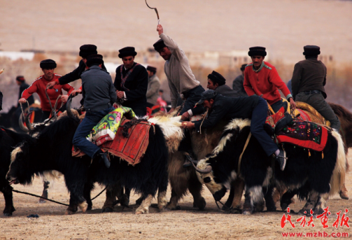 塔吉克族獨(dú)有的騎牦牛叼羊 袁東平 攝影 引自民族畫(huà)報(bào)