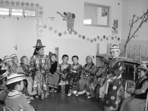 肅南縣幼兒園教師為孩子教授裕固族語言