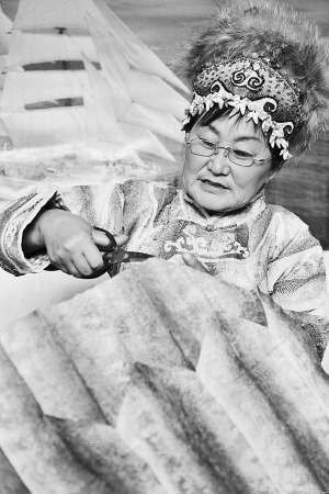 2006年,尤文鳳被授予“國家級非物質(zhì)文化遺產(chǎn)項(xiàng)目赫哲族魚皮制作技藝傳承人”稱號。尤文鳳說:“前一陣搜集到一本中國早期人類學(xué)家林春生寫的《松花江下的赫哲族》。按照書里所記載的,現(xiàn)在我正在全力恢復(fù)古老的魚皮衣樣式,從款式到花紋都要原封不動地繼承下來?!?/p>