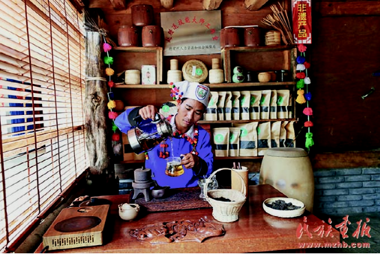 趙臘退的妻子正在制作優(yōu)質的德昂酸茶。