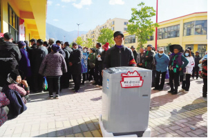 在社區(qū)的樹新風(fēng)積分超市前,居民們排起整整齊齊的長隊(duì),不由得讓人好奇。
