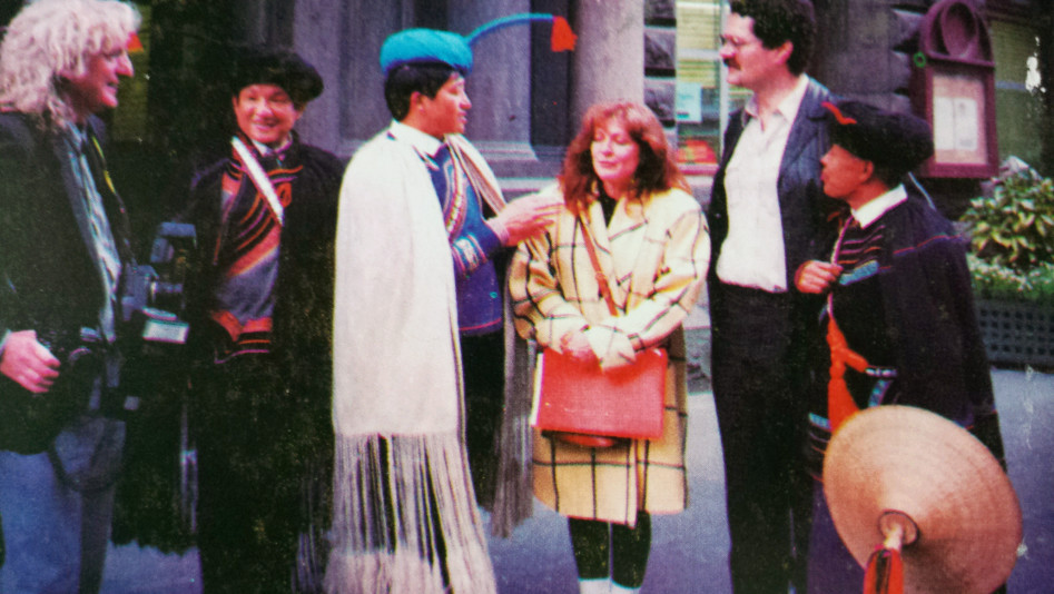 ▲上世紀90年代,沙馬拉毅(左三)參加國際會議。 沙馬拉毅供圖