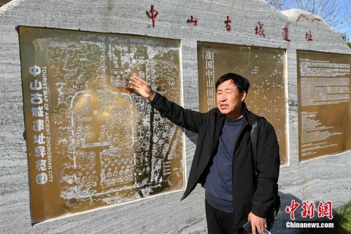 圖為11月10日,黃軍虎正在介紹中山古城遺址概貌。 中新社記者 翟羽佳 攝