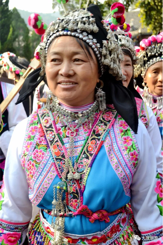 彌渡彝族好賽裝,每逢婚喪嫁娶、趕集、集會(huì)都要比一比穿戴。每年農(nóng)歷正月十五鐵柱廟彝族踏歌會(huì),那是賽裝高潮。