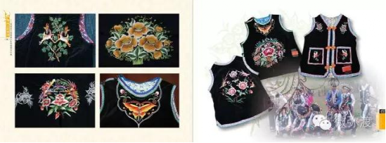牛街境內(nèi)這兩個彝族支系的服飾,除頭飾和領合差別較大之外,其它部分由衣服、圍腰、花鞋等組成。襯衣以白色為主,領褂以黑色為主,對襟鑲邊。圍腰以黑色面料為主,上繡牡丹等大花,兩邊各一花瓶,分長、短兩種。長圍腰訂有兩根掛帶,掛帶有銀質(zhì)掛帶盤,掛帶盤各訂三絲。褲子顏色以深黑色為主。鞋子多為布鞋,鞋底以裱布包白布,以底線密縫,分為三層,中間有毛邊,鞋面黑色繡花,所繡花為喜字、假喜字、撲魚、提籃等花樣。