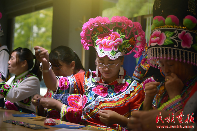 不忘初心,方能遠(yuǎn)行。在上下求索創(chuàng)意民族服飾的同時(shí),盧潔瑩不忘致力于彝族傳統(tǒng)文化的發(fā)揚(yáng)與傳播。2016年起,索玉文化美學(xué)創(chuàng)意有限公司與楚雄市婦聯(lián)、彝繡協(xié)會共同主辦的,旨在幫助楚雄山區(qū)彝族婦女用傳統(tǒng)手工技藝精準(zhǔn)扶貧的培訓(xùn)項(xiàng)目“彝繡之夢”已開展了兩年?!皠?chuàng)業(yè)不易,要致富也要帶動各族同胞一起致富?!北R潔瑩說,“我們的培訓(xùn)班每年都開辦,就是要幫助繡女們走出大山,走進(jìn)大眾的視角,提供一個(gè)給她們展示與發(fā)掘精美彝繡技藝的平臺。”