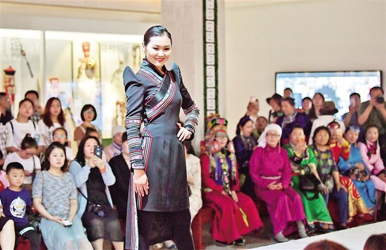 在保持傳統(tǒng)文化特色的同時,與現(xiàn)代審美需求、生活需求和工藝技術(shù)有機結(jié)合,設(shè)計生產(chǎn)出更多時尚化、生活化的蒙古族服飾,滿足不同消費者的需求……新時代對民族服飾提出了更高的要求。
