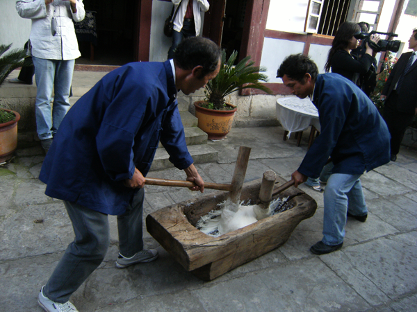 貴陽烏當(dāng)區(qū)偏坡布依寨村民做打糕 老鐵供圖