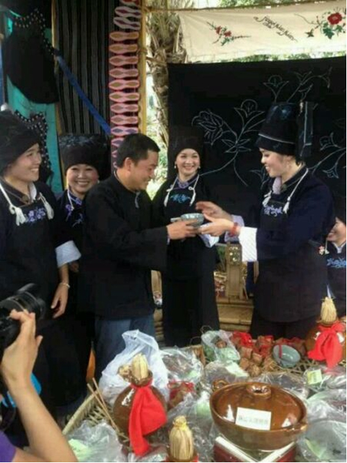 布依族的攔路酒通常都有三、五道,多的可設(shè)12道,真所謂“ 過五關(guān)斬六將” ,若是酒量平平者,早已望而卻步了。不過,長安的民族是文明的,你若不善飲,就記住別用手觸摸酒杯,只需將布依姑娘敬上的酒,示意性的飲過即可過“ 關(guān)” 。你若是海量,接下酒來,那一碗或一牛角酒就必須喝完。