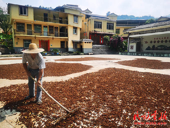 9月23日,為慶祝第五個中國農(nóng)民豐收節(jié),羅運(yùn)村村民盤石輝等人通過《十二月耕作歌》《釣魚舞》《黃泥鼓舞》等歌舞形式,慶祝今年村里八角、甜茶、竹筍等產(chǎn)業(yè)喜獲豐收。