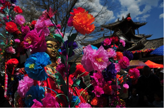 “二月八”是大理州劍川縣有著上千年歷史的白族傳統(tǒng)重要節(jié)慶之一,時(shí)間為每年農(nóng)歷二月初八日。其形成的主要因素是受佛教密宗文化的影響。相傳,農(nóng)歷二月初八日,釋迦牟尼生前為毗羅衛(wèi)國(guó)凈飯王的太子出皇宮到民間查看,看到人世間生、老、病、死等種種疾苦,遂立志創(chuàng)立佛教,普渡眾生。便于當(dāng)晚舍棄皇宮生活和太子的地位,踰城出家修行,尋求解除百姓種種苦難的道路,最后創(chuàng)立了佛教。明、清兩代至今,每年的二月八,廣大佛教信徒聚集在劍川縣城金華鎮(zhèn)和沙溪鎮(zhèn)寺登街,舉行盛大的紀(jì)念活動(dòng),抬著釋迦牟尼的太子雕像,一路鐘鼓齊鳴,焚香誦經(jīng),浩浩蕩蕩,漫游“四門”,常常聚集萬(wàn)人,一般村嫗老婦也喜歡牽?jī)簬O參加游行,并把自家的孩子裝扮成“太子”,以沾“佛”氣。