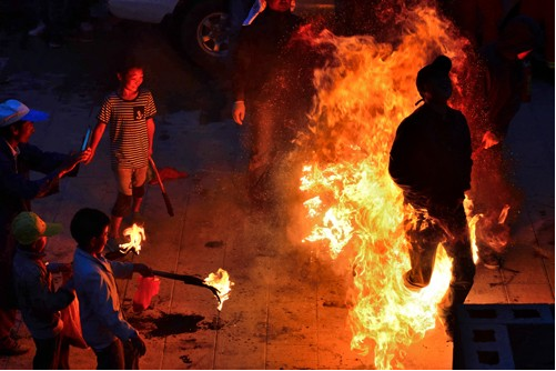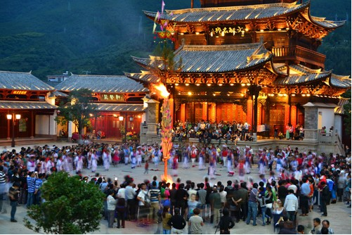 劍川的火把節(jié),還是增進(jìn)親友情誼的一個(gè)紅火節(jié)日。到燃燒著的火把樹(shù)下玩,烤著火把節(jié)的火,在火光中歡樂(lè)談笑,平時(shí)見(jiàn)面只打招呼的人喝酒碰杯,說(shuō)句貼心的話,情誼一下子就升華了。