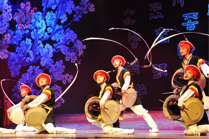 其實朝鮮族的打擊樂發(fā)展歷史源遠流長。我國民族打擊樂眾多,特征各異,各民族的打擊樂特征又連接著本民族的其他音樂。朝鮮族音樂文化的產(chǎn)生與發(fā)展相當古老,朝鮮族打擊樂與音樂形式多種多樣,有各種類型,如“盤坐式四物樂”、“游走式四物樂”、“立鼓”等等,而四物樂是朝鮮族具有代表性的打擊器樂組合之一。
