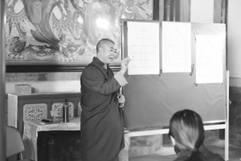 10月20日,更登達(dá)吉在繪畫唐卡體驗(yàn)活動中。張式宜攝