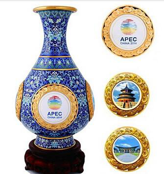 2014年APEC會議中,作為國禮饋贈給各經(jīng)濟體領(lǐng)導人的三件禮品中就有一件采用景泰藍工藝,以藏于北京故宮博物院的霽紅釉玉壺春瓶為原型,由中國七位國家級、北京市工藝美術(shù)大師聯(lián)手創(chuàng)作的《四海升平》景泰藍賞瓶。