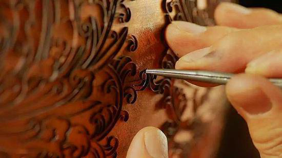 工藝美術(shù)大師米振雄堅持“景泰藍首要的是手工藝美,從打胎到磨光,都必須是手工藝”??此銎z,是一種安靜的欣賞。大師一邊用手指甲蓋抵住紫銅絲,另一只手抓著鑷子,拉長、彎折、回旋。如何拿捏花樣的形狀、掰出弧度大小,全憑師傅一雙巧手。