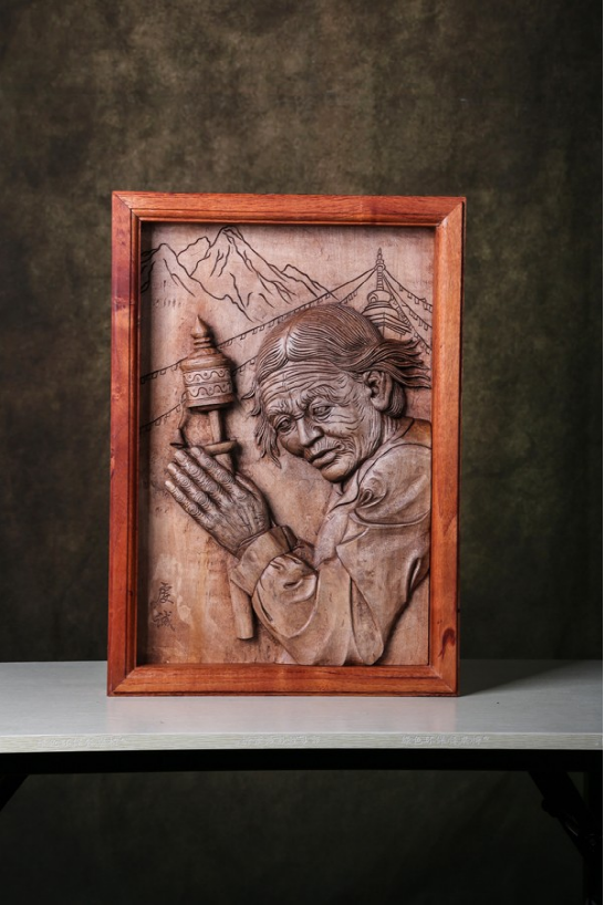 《門神》、《福滿門》這是劍川木雕在繼承傳統(tǒng)基礎(chǔ)上,對(duì)傳統(tǒng)的一種大膽嘗試性的發(fā)揚(yáng)創(chuàng)作。這些作品的特點(diǎn)是,既保留了嫻熟的傳統(tǒng)木雕技藝,只是通過巧妙的組合,在現(xiàn)成的古老大門上雕出“門神”或用舊門框作為木雕作品的邊框,從而產(chǎn)生一種新的意趣,這種創(chuàng)意很適合當(dāng)下都市的審美要求,也是劍川木雕未來發(fā)展中很值得提倡的新思路。木雕復(fù)制《張勝溫畫卷》