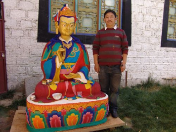 在普布次仁所在的公司里,有一個(gè)專(zhuān)門(mén)用來(lái)制作泥塑面具的房子,從外表上看去,它只是一個(gè)普普通通的藏式民居,但走進(jìn)其中,則別有一番天地。在房間里整齊擺放了大大小小的泥塑面具、佛像,這些手工藝品造型生動(dòng),每一件手工藝品仿佛都在訴說(shuō)著一個(gè)古老、動(dòng)人的故事。