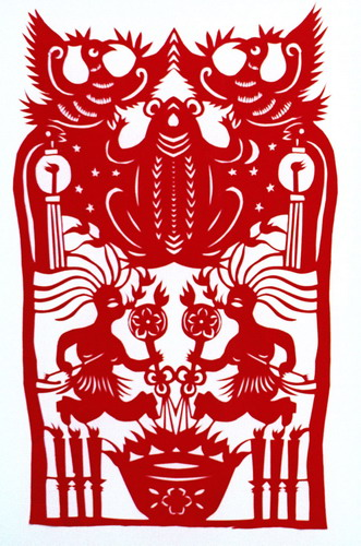 和林格爾剪紙有著悠久的發(fā)展歷程,世世代代在這里生活的北方游牧民族開創(chuàng)了這里的剪紙藝術(shù)。和林格爾歷史上有眾多民族在這塊土地上生息繁衍,是北方游牧民族和中原農(nóng)耕民族交匯融合的重要地區(qū)之一,先后有土方、鬼方、獫狁、樓煩、林胡、匈奴、突厥、鮮卑、烏桓、契丹、女真、蒙古、滿等北方民族駐牧;后又有清代著名的“走西口”——清朝向西北用兵,在和林格爾開辟驛站,大力開發(fā)西部,山西、陜西等地農(nóng)民紛紛來此開荒,在此定居,農(nóng)耕文化與草原文化再一次融合。這些為和林格爾剪紙的創(chuàng)作提供了肥沃的土壤;繼而逐漸形成了和林格爾剪紙獨(dú)具特色的藝術(shù)形態(tài)。目前,和林格爾縣 13 個(gè)鄉(xiāng)鎮(zhèn),4 萬農(nóng)戶,僅有 18 萬多人口的和林格爾縣擁有業(yè)余剪紙人員超過 5000 人,年齡最大的近百歲,最小的僅有七八歲。