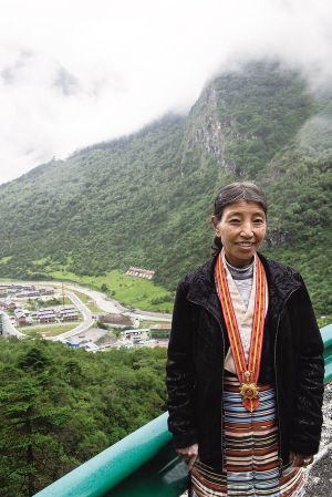 卓嘎在通向玉麥的盤(pán)山公路上留影。 新華社記者 孫瑞博攝