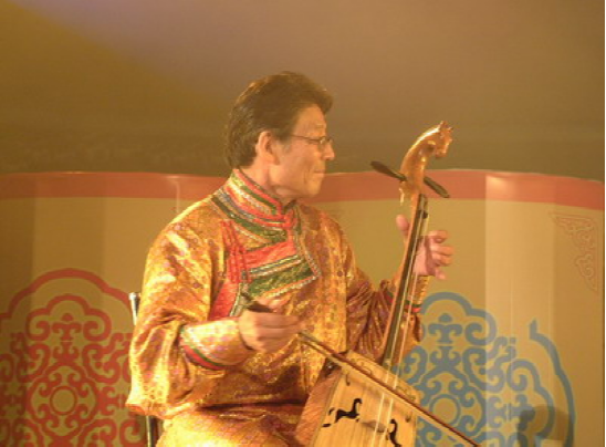 若西戈瓦在“烏蘭杯”第三屆中國蒙古族服裝服飾藝術(shù)節(jié)閉幕會上演奏《萬馬奔騰》