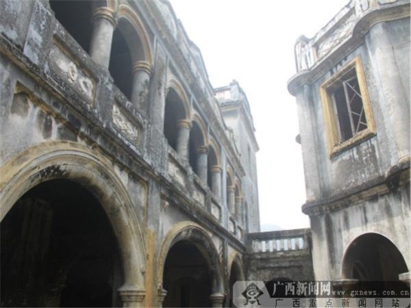 如果說尚德堂是中西混血兒的話,他的兄弟“松柏莊”就是純正的“英國帥哥”?!八砂厍f”具有英國新式古典建筑風格,共分為兩層,北面設有陽臺。陽臺及門窗上部均是圓弧形,用帶有高級的石膏線勾邊。陽臺由數(shù)十條羅馬柱支撐,檐口用西洋線腳裝飾,具有英國新式古典建筑風格。建筑墻體為白色,與墻上“松柏莊”三個黑色大字相映,十分顯眼,盡顯歐式建筑色彩的視覺沖擊效果。老宅有些殘舊,但墻上的雕畫仍然凹凸有致,圖案清晰可見,這無一不表露這家主人曾經(jīng)的輝煌。