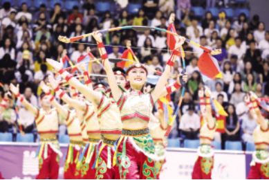 ①青海隊(duì)表演項(xiàng)目《五彩神箭》 徐宏星攝